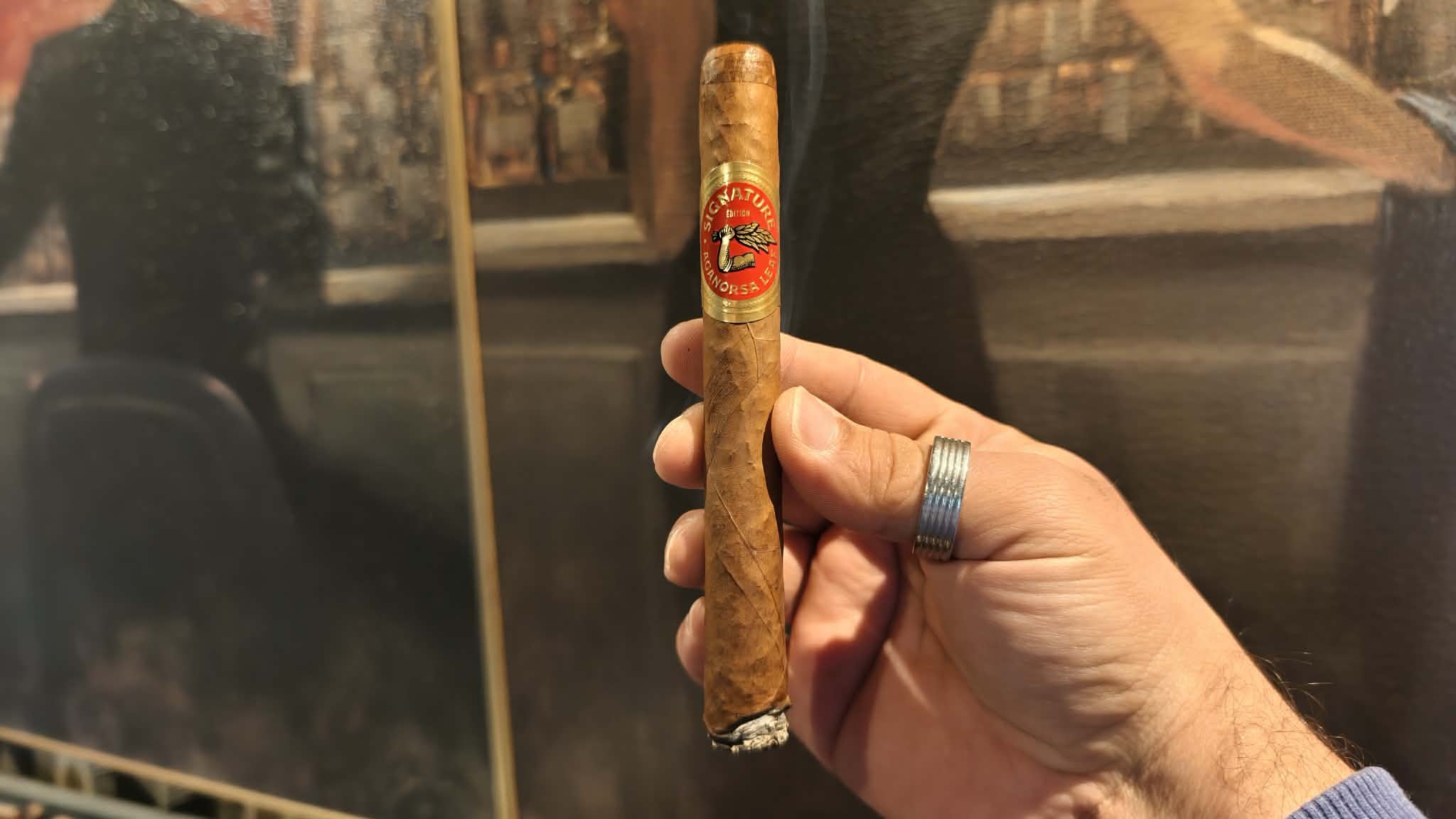 The Corona Gorda looks elegant with its silky wrapper and neat presentation, but it feels slightly uneven in hand. Pre-light aroma offers cedar, hay, and pepper. The cold draw is acceptable, though a little tighter than expected. Unfortunately, the promising start quickly disappears once lit.
