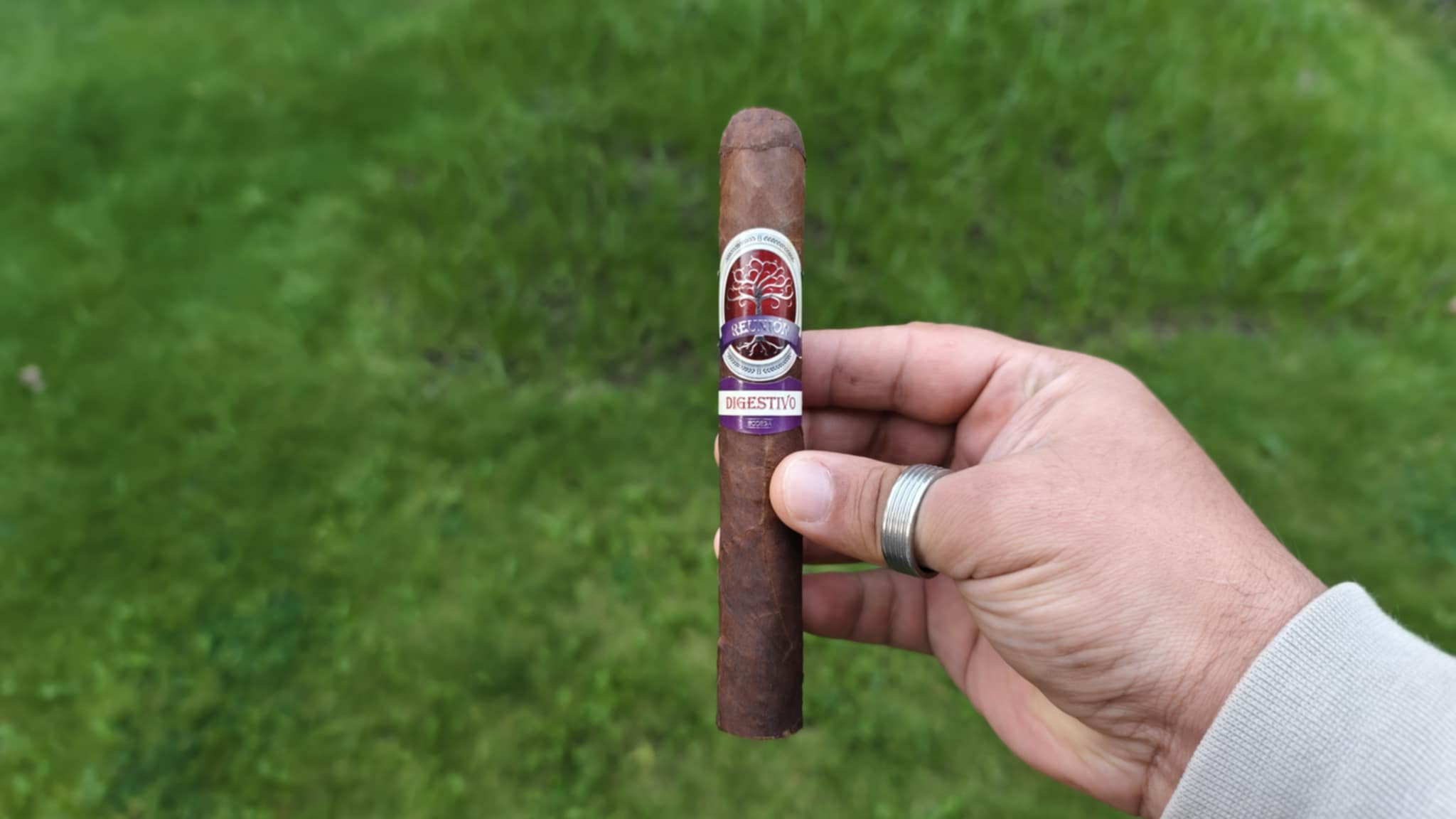 The Reunión Digestivo Toro shows off a dark, slightly oily wrapper with firm construction and an elegant band design. Pre-light aromas bring cocoa, espresso, and earth. Cold draw reveals black pepper and roasted coffee, setting the stage for a rich profile.