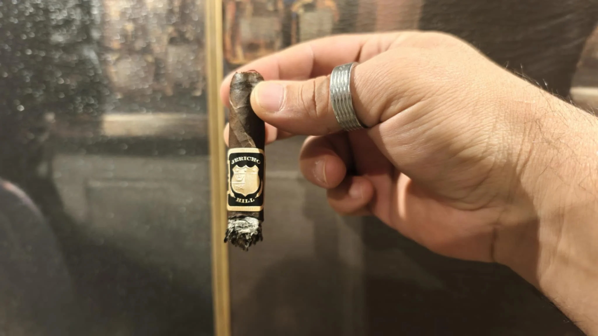 The Jericho Hill 12 Honest Man shows a dark, oily Mexican San AndrΓ©s wrapper with fine tooth and tight seams. Pre-light aroma is rich with cocoa, pepper, and earth. Cold draw is slightly tight, offering dark chocolate and spice.