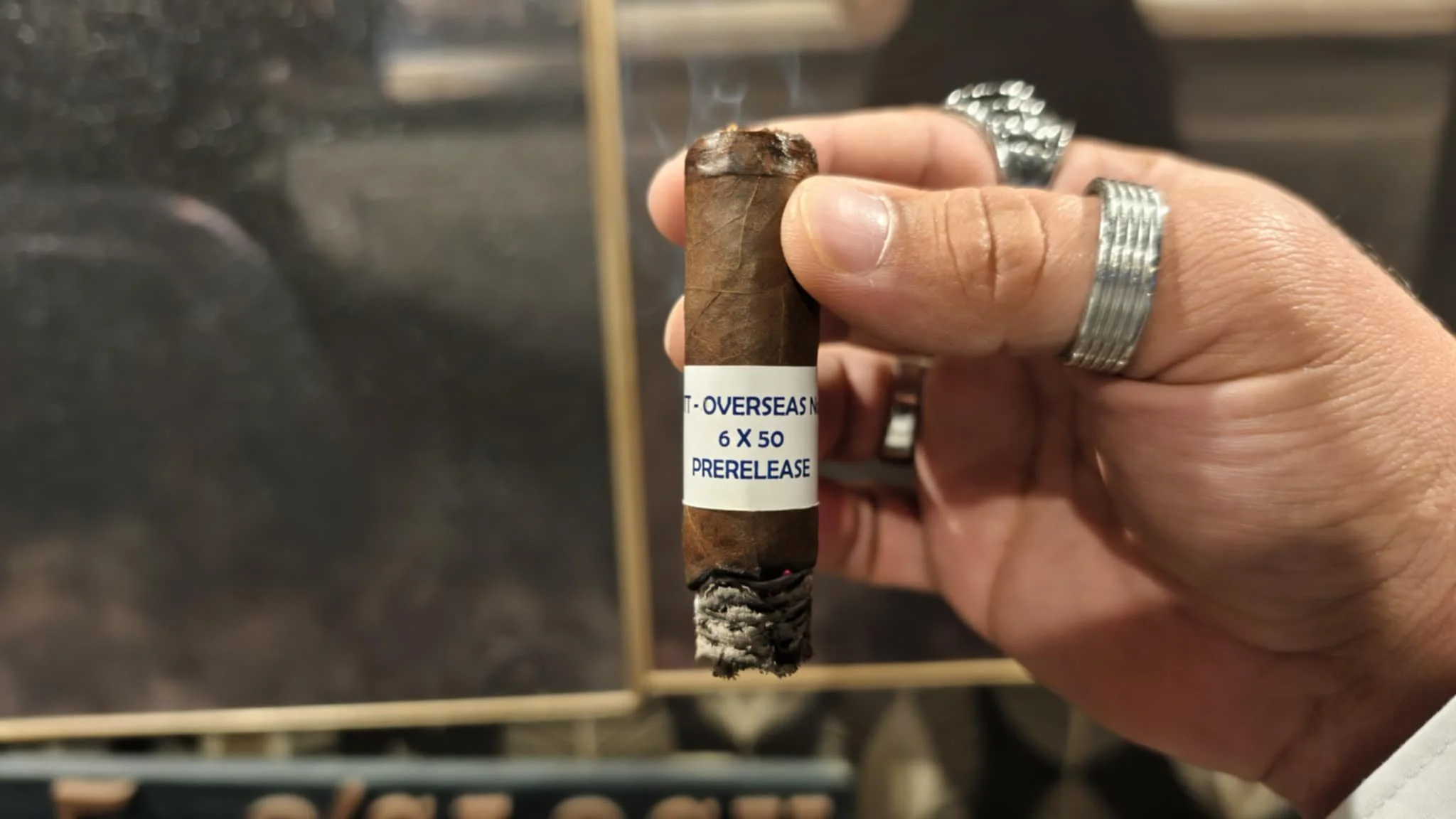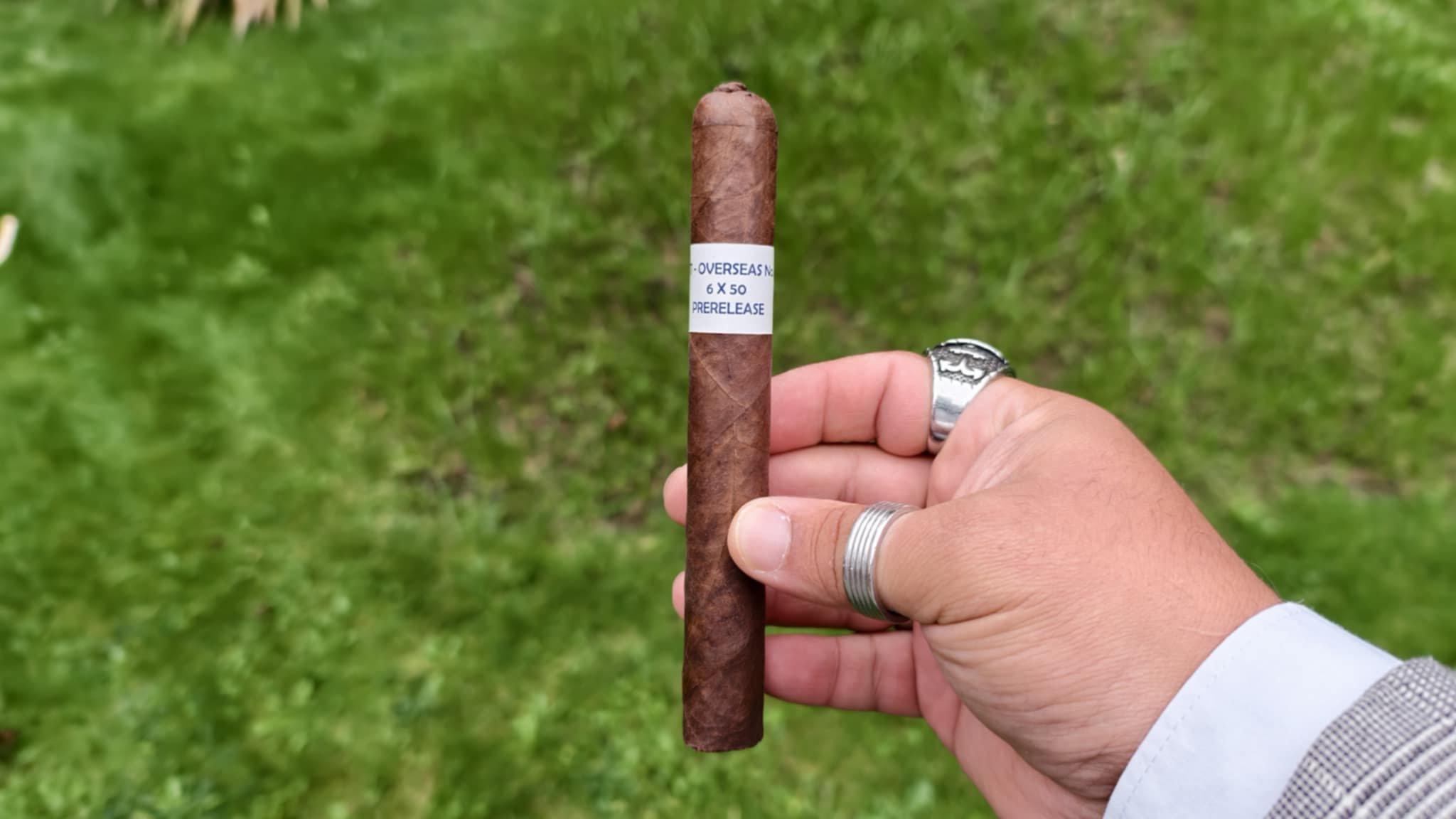 The Overseas No. 1 Pre-Release carries a dark, oily wrapper with a solid construction and subtle veins. Pre-light aroma brings cocoa, barnyard earth, and pepper. Cold draw is loose, hinting at airflow issues but giving bold chocolate notes.