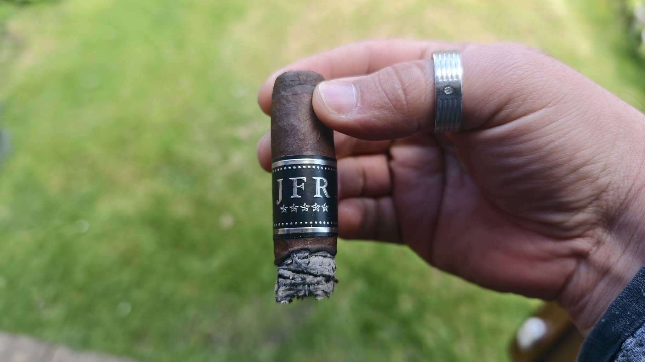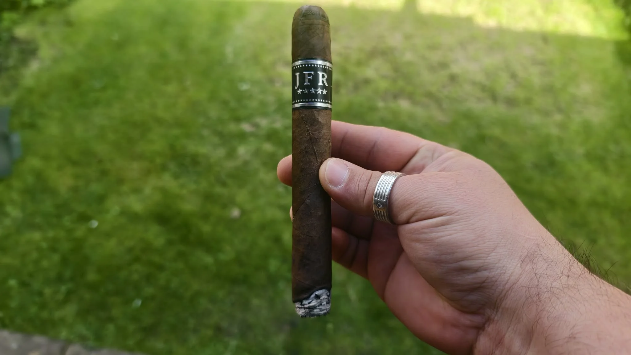 The JFR Maduro Super Toro has a dark, oily Mexican San Andres wrapper and the signature pigtail cap with folded foot. In hand it feels very firmly packed, almost overfilled. Pre-light aroma suggests earth, cocoa, and pepper. The cold draw is already extremely tight, hinting at the problems to come. The cigar is normally marketed as a rich, medium-to-full-bodied Nicaraguan smoke with spice and cocoa notes, but this example never quite delivers that promise.