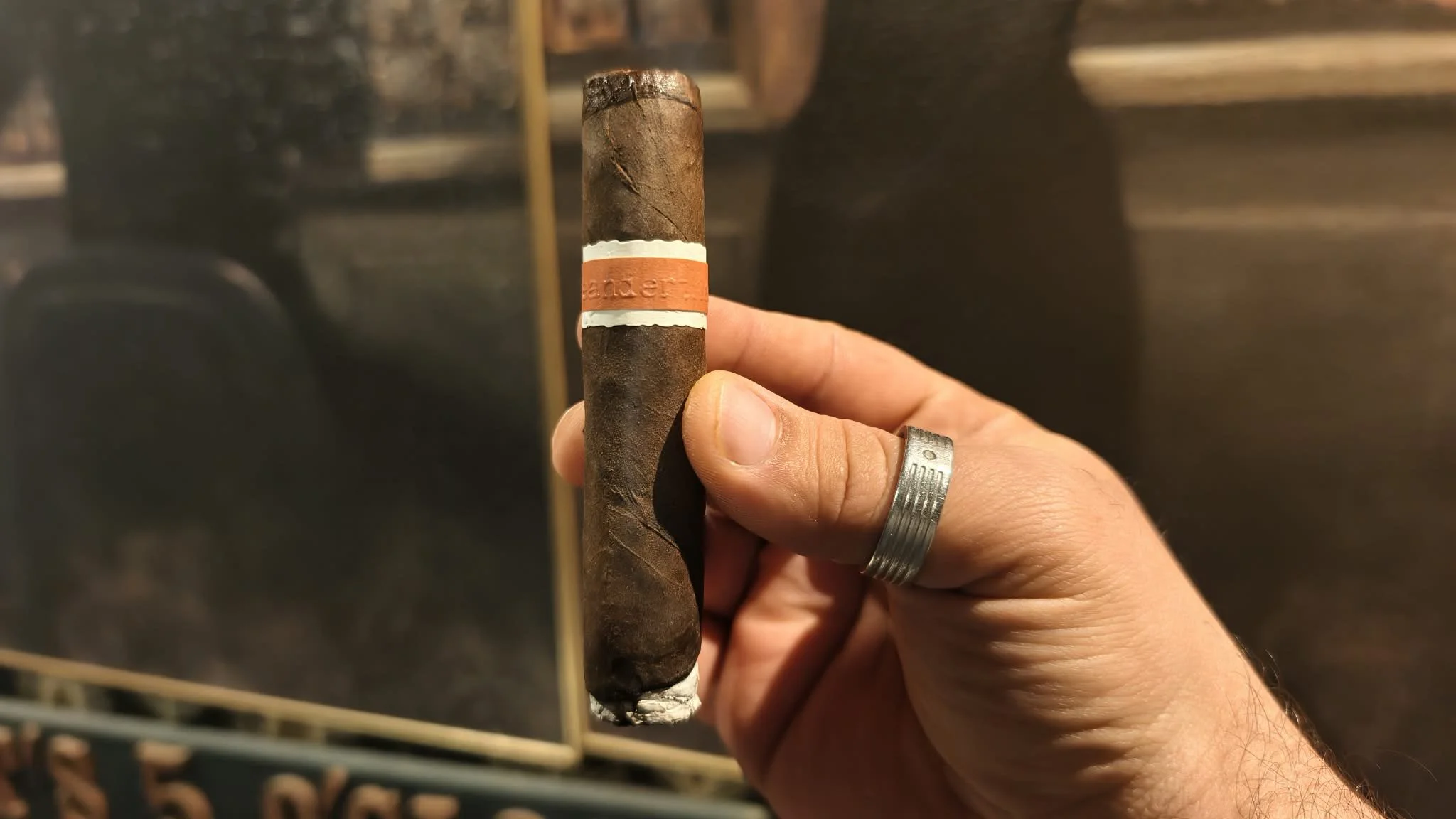 The GD is a hefty cigar with a dark, toothy Mexican San Andres wrapper and very solid bunching. It feels heavy and substantial in hand. Pre-light aroma reveals cocoa, espresso, and raw earth. Cold draw is slightly firm but flavorful, suggesting a powerful smoke ahead.
